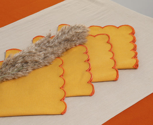 • PurpleEssences Scalloped Embroidery Cloth Napkins Table Decor Fall Thanksgiving 100% Cotton Set of 4-18 x 18 inch - Golden Yellow - Edges - Orange