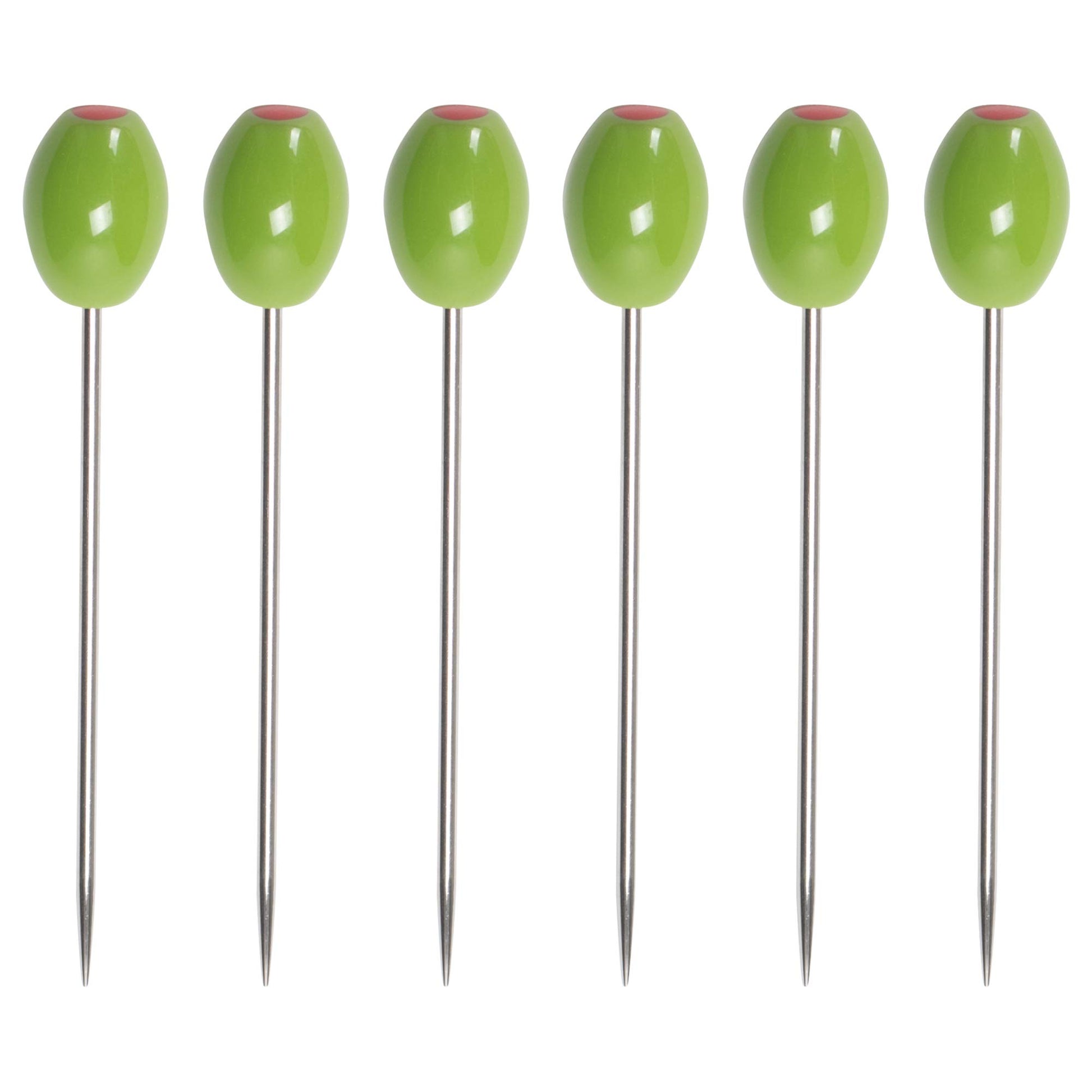 • Olive Cocktail picks pack of 6 features sturdy shafts topped with bright green resin cocktail olives and red pimento center