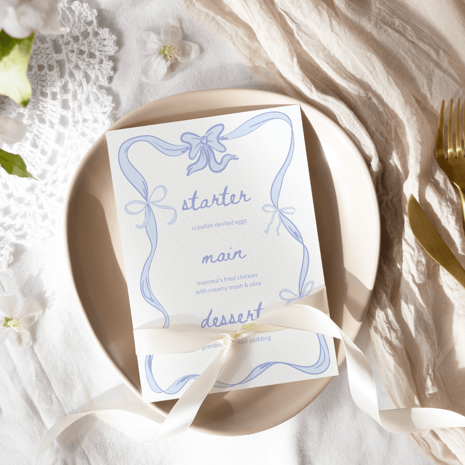 Featuring a chic, hand-drawn design, this editable Canva template is perfect for creating a refined menu for weddings, showers, or special events. Print at home or with a professional service for a touch of class.